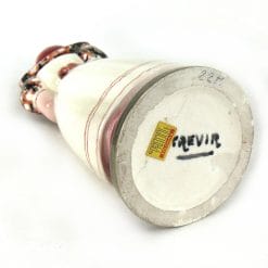 Statuina di fanciulla con mazzo di fiori, agghindata con graziosissimo abitino estivo abbinato al cappello, con la delicata scelta di toni pastello tipica della storica ceramica Trevir di Vicenza. Unico difetto da evidenziare l’incollatura trasversale sul piedistallo.