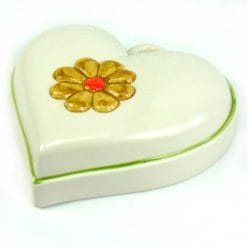 Grande Formella THUN a forma di cuore con fiore ocra e bordino verde, fuori produzione. In condizioni perfette.