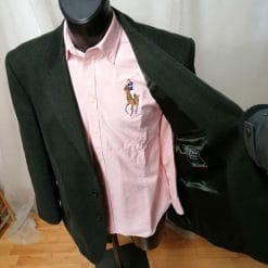 Blazer da uomo Luciano Benetti in lana vergine tirolese, con toppe sui gomiti. Ottima fattura sartoriale, due spacchi posteriori, spalle imbottite.