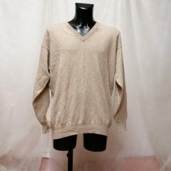 Maglione da uomo in cashmere (cachemire) beige, scollo a V con lavorazione al bordo.