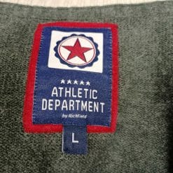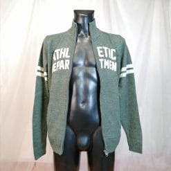 Cardigan / maglione da uomo con zip Athletic Department by Richfield vintage. Colore verde e crema con applicazione in gommina.
