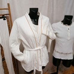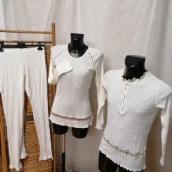 Set di abbigliamento da casa (ma non solo) comprendente un paio di leggings, una maglia a maniche lunghe e un cardigan Malizia, composizione cotone e rayon + un paio di leggings e una maglia a maniche lunghe marca Giada in 100% cotone. Tutto elasticizzato. TAGLIA: seconda / 42. CONDIZIONI: ottime. MISURE: vita 31-56 cm, lunghezza pantaloni 104 cm, spalle 45 cm, petto 40-52 cm