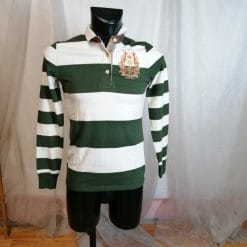Particolare Polo Ralph Lauren a righe, stemma ricamato sul petto, elasticizzata.