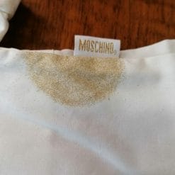 Moschino, vestito con glitter per bimba 2 anni. Ha un nodo decorativo e una zip sul fianco.