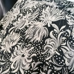 Il vestito si chiude con un singolo bottone e ha una scollatura profonda ma molto sobria. Foderato. Adatto alla mezza stagione. Un abito di sartoria ricco e lussuoso, autenticamente unico.