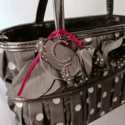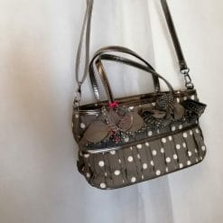Camomilla, borsetta a pois con tracollina staccabile. In tessuto e imitazione pelle.