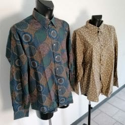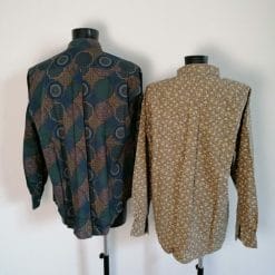 Coppia di favolose camicie unisex vintage pari al nuovo, realizzate con materiale di gran qualità in fantasie che richiamano il decennio a cavallo tra anni 80 e 90. Piccolo prezzo per una coppia di capi che ti svolta il guardaroba.