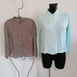 Coppia di deliziose camicette vintage molto particolari, perfette per l’autunno. Facilissime da abbinare, una ha un grazioso colletto stondato mentre la seconda ha una dingolare allacciatura sul colletto alla coreana.