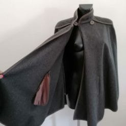 Mantella di lana vintage, grigia con tasche, due bottoni al collo. Capo molto versatile, pratico e di figura, si tratta di un pezzo unico.