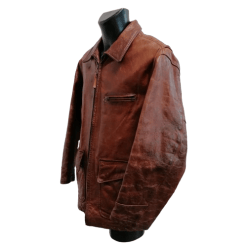 Questa giacca, realizzata con cura artigianale, ha una struttura pesante e consistente e una pelle spessa che garantisce protezione e durata nel tempo. La storia e le esperienze vissute sono testimoniate dai (minimi) segni di usura, che aggiungono autenticità e personalità.
