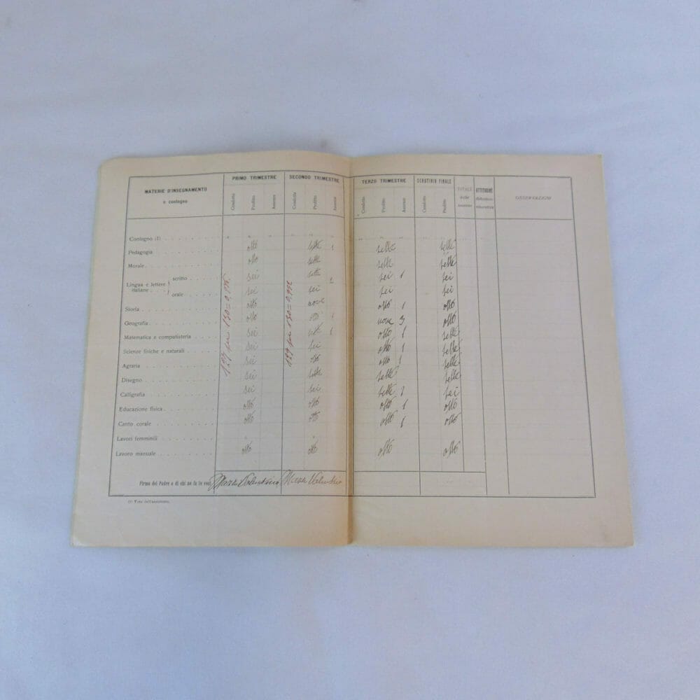 Passano gli anni, ma certe cose non cambiano…come le pagelle a fine anno scolastico! Conservate in ottime condizioni, queste due pagelle risalenti oramai a 100 anni fa offrono un piccolo spaccato sul passato, riuscendo a suscitare un po’ di emozione e allo stesso tempo a strappare un sorriso. Nelle fotografie il nome è censurato per motivi di privacy.