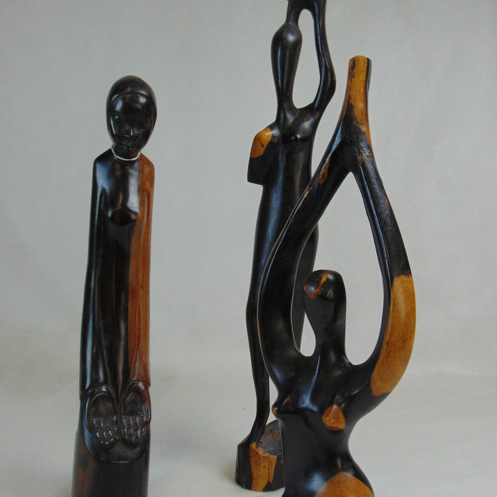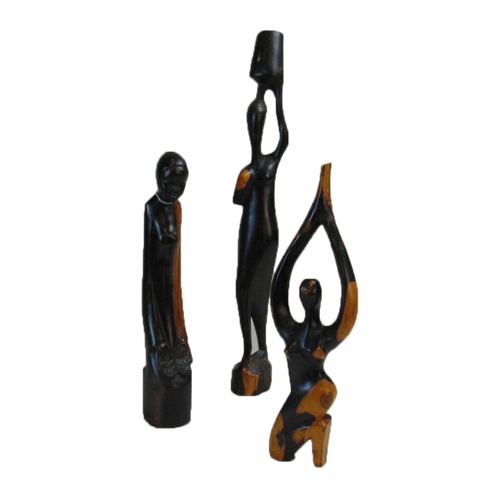 Lotto di 3 rare sculture africane in ebano massiccio raffiguranti figure femminili: una in preghiera, una in offerta e una portatrice. Le sculture provengono dal Benin e sono state realizzate da artigiani locali in contatto diretto con Mani Tese. Sono interamente realizzate in prezioso ebano e sono in ottime condizioni. Acquistabili anche separatamente.