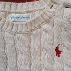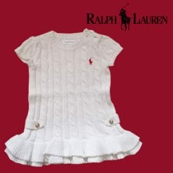 Abitino bimba 9 mesi Ralph Lauren. Due bottoncini dorati sulla spalla e sul fondo, logo sul petto, lavorato a trecce. 100% cotone.