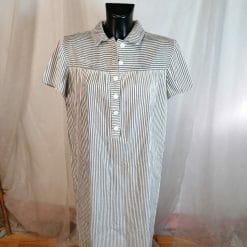 Comodo e versatile, abito a righe in cotone con bottoni. Da portare così com’è per un look pratico e da valorizzare con accessori per un outfit più ricercato.