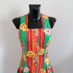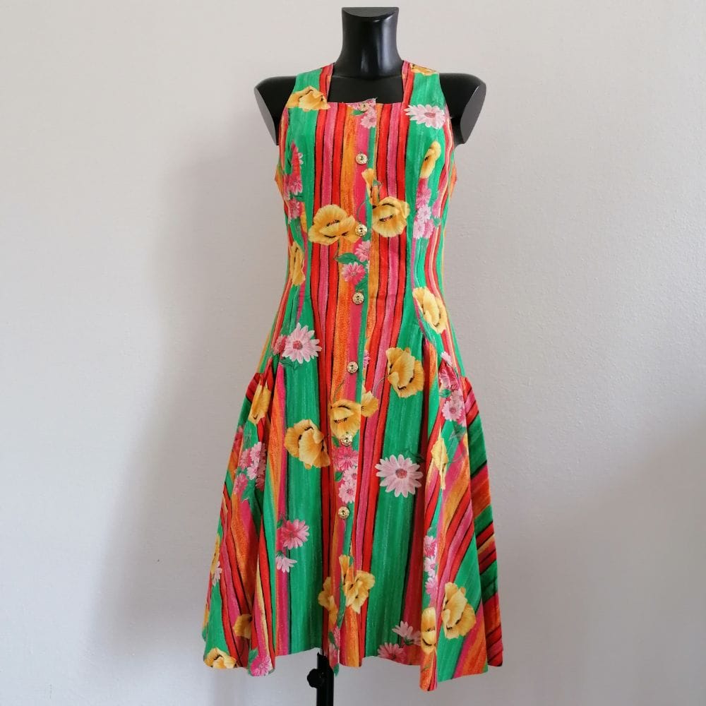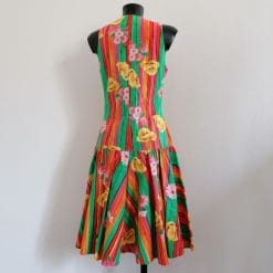 Abito coloratissimo di cotone, smanicato, svasato. Vestito anni 90, vintage, estivo.