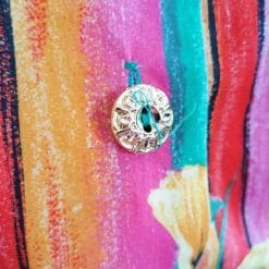Un vestito comodo adatto ad essere indossato ogni giorno, bella linea fit & flare, un abito confezionato a Milano negli anni ’90. Fantasia coloratissima, abbottonatura frontale completa