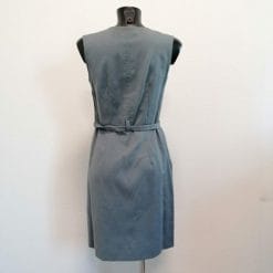 Una bella tonalità di azzurro polvere per questo vestito vintage sagomato con cintura, tendente al colore jeans. Facile da gestire e indossare, con i giusti accessori si può far passare da formale ad informale rendendolo un capo jolly.