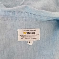 Abito in cotone denim jeans azzurro stile country, smanicato con lunga gonna, bottoni automatici. Marca Pop 84