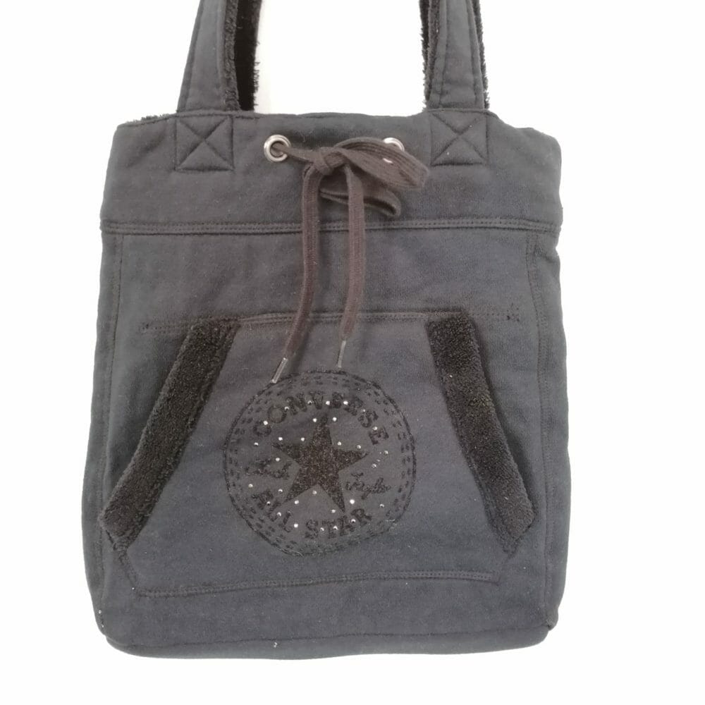 Converse All Star borsa modello tote in felpa con finiture in pelliccia sintetica, logo con borchiette. Colore nero, alcune foto sono sovraesposte per mostrare i dettagli