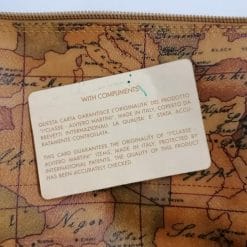Classico pattern con cartina geografica per questa mini tracolla Alviero Martini 1a Classe, da portare sulla spalla per gli amanti delle tracolle sobriamente corte o anche come borsetta a mano.