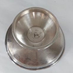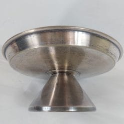 Elegante alzata Gio Ponti per Krupp in alpacca argentata vintage, realizzata tra il 1945 e il 1955 per la storica azienda Krupp Milano. Disegnata dal celebre architetto e designer Gio Ponti, questa alzata centrotavola coniuga stile modernista e funzionalità, ed è un raffinato esempio di design italiano del dopoguerra. Il pezzo presenta il marchio originale “Krupp Milano” con l’iconico orso nel rombo.