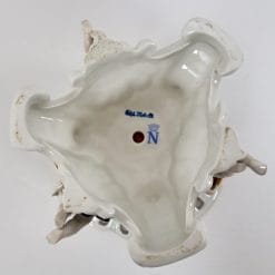 Questo pezzo pregiato, realizzato con maestria artigianale, incarna l’eleganza dei decori tipica della manifattura di Capodimonte, integrati con la colorazione bianca e blu realizzata con la tecnica del cobalto. Questa si riferisce alla porcellana bianca e blu cioè quel genere di vasellame decorato con un pigmento blu, generalmente ossido di cobalto appunto. La decorazione viene realizzata a mano, con il metodo dello stencil o della stampa a trasferimento termico anche se in passato sono stati usati altri metodi di applicazione. La tecnica delle decorazioni in cobalto blu sembra sia stata realizzata in medio oriente nel IX secolo, attraverso delle sperimentazioni su vasellame bianco. I pigmenti di cobalto blu venivano estratti dalle miniere dell’Iran centrale a partire dal IX secolo ed esportati, come materiale grezzo, in Cina. Qui la tecnica venne sviluppata completamente in Cina nel corso del XIV secolo.