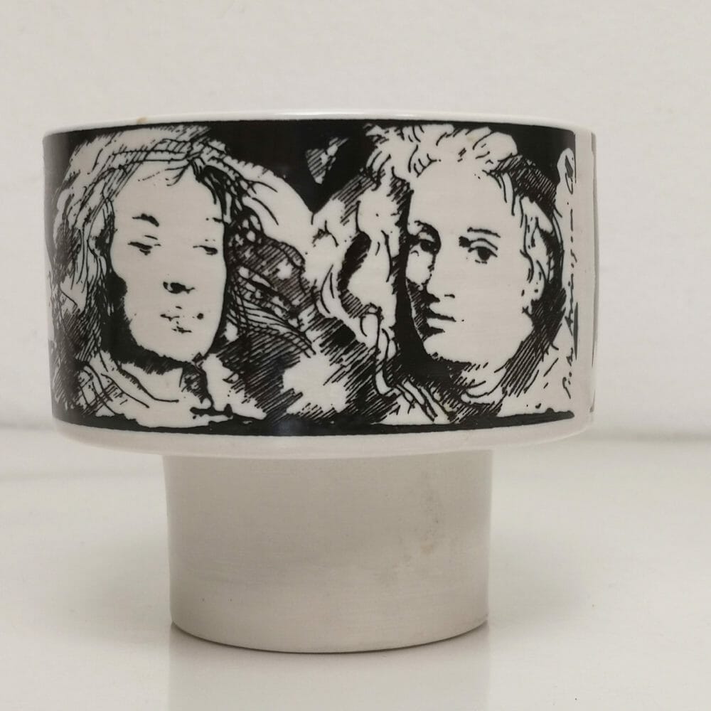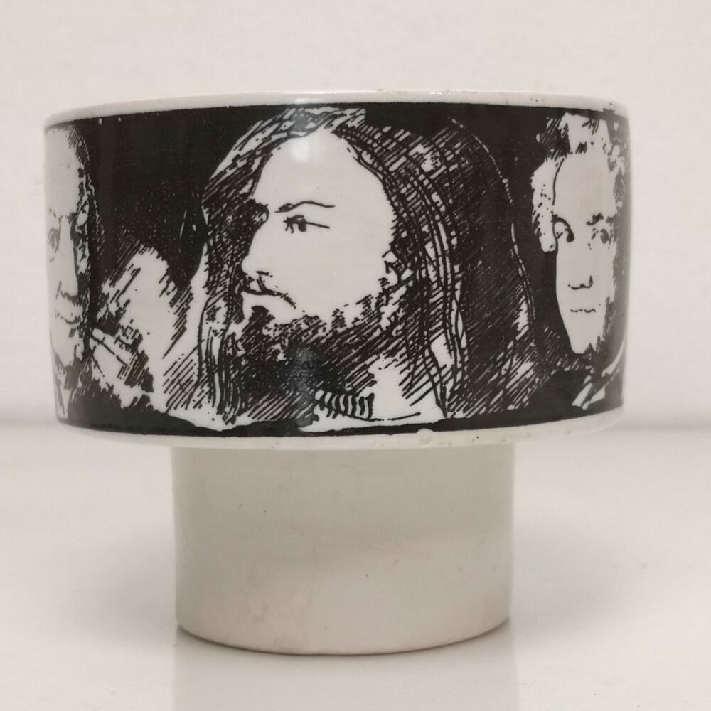 Set di quattro tazze di porcellana da collezione firmate da Pietro Annigoni, marchiate sul fondo da Porcellane D’Arte Eva Sud.