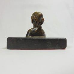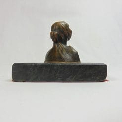 Antico bronzetto dell’800 raffigurante un busto di dama medioevale, con basamento quadrato in marmo nero e verde scuro. In ottime condizioni, presenta una fodera rossa sul fondo per non rovinare i mobili.