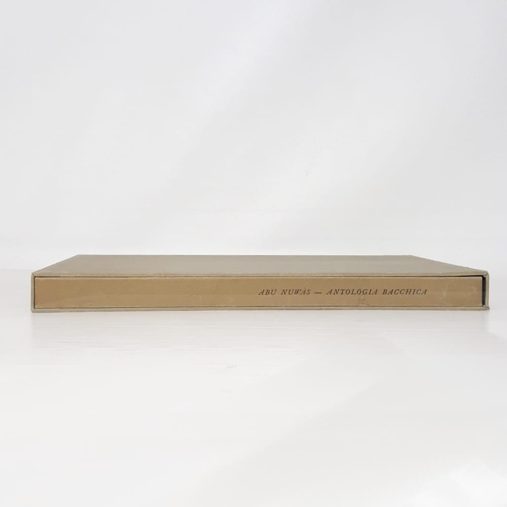 Volume edito a tiratura limitata in 330 copie (la nostra è numerata 108). Edizione in brossura con carta in barbe in cofanetto muto, impressa su carta Sant’Ilario bianca; indubbiamente la particolare cura per la rilegatura lo rende un oggetto da collezione. La rilegatura pregiata riflette l’inestimabile valore culturale delle poesie di Abu Nuwas, rendendole non solo una lettura affascinante ma anche un prezioso oggetto d’arte libraria.