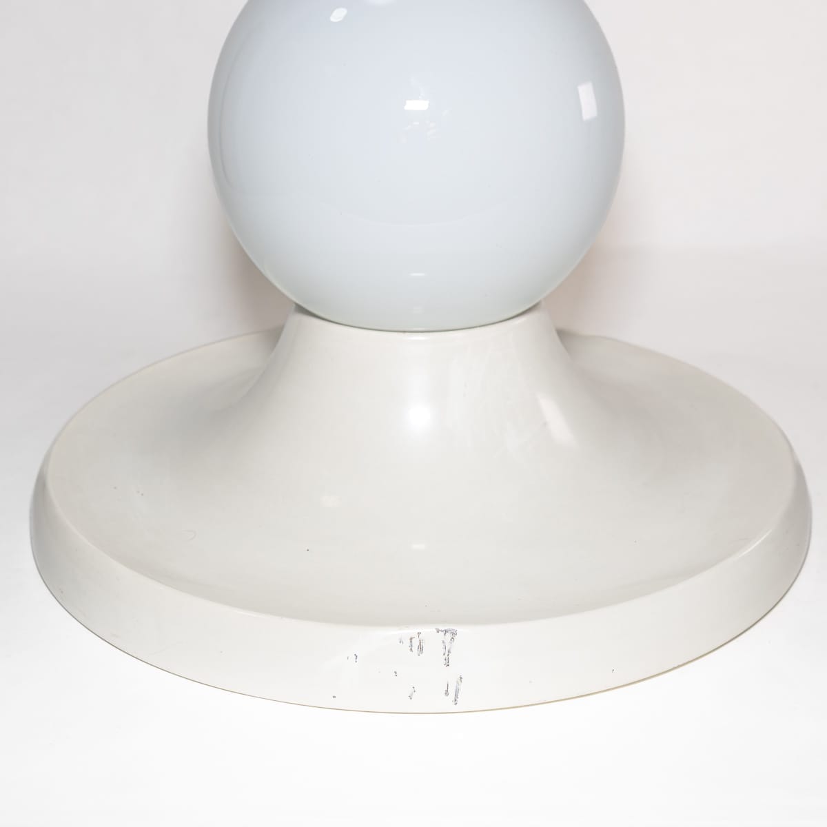 Lampada da parete di design marchio Flos modello Light Ball, realizzata in metallo verniciato e diffusore in vetro opalino da Achille Castiglioni.