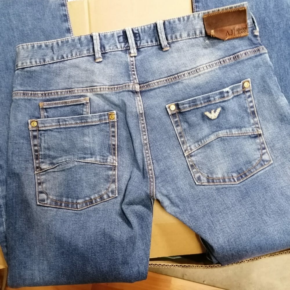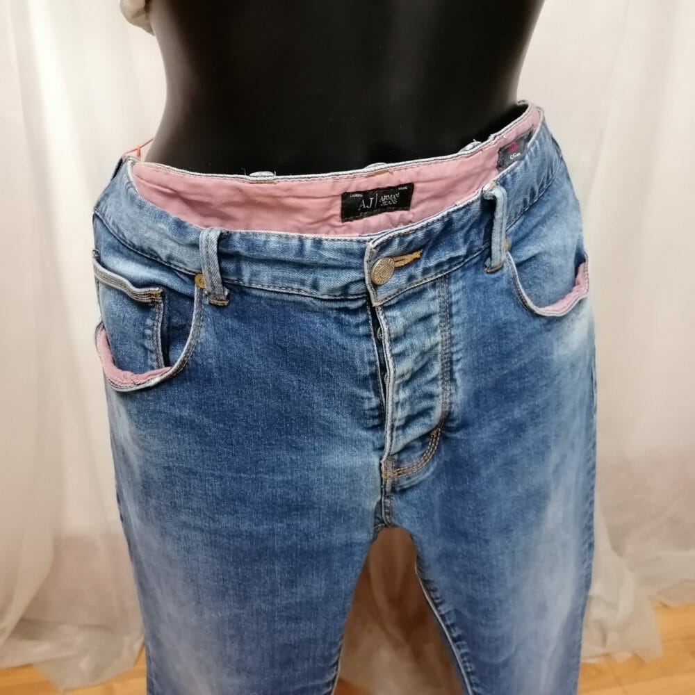 Jeans donna originali Armani, modello classico con finiture rosa. Cotone 98%,elastam 2%. Gamba dritta.