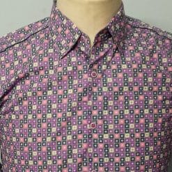 Camicia color lilla floreale, originale BAISAP taglia M. Camicia modello Slim fit di cotone al 100% con grafiche floreali assortite in varie tonalità lilla, interni blu e bottoni bianchi e viola. L’articolo è nuovo mai usato!