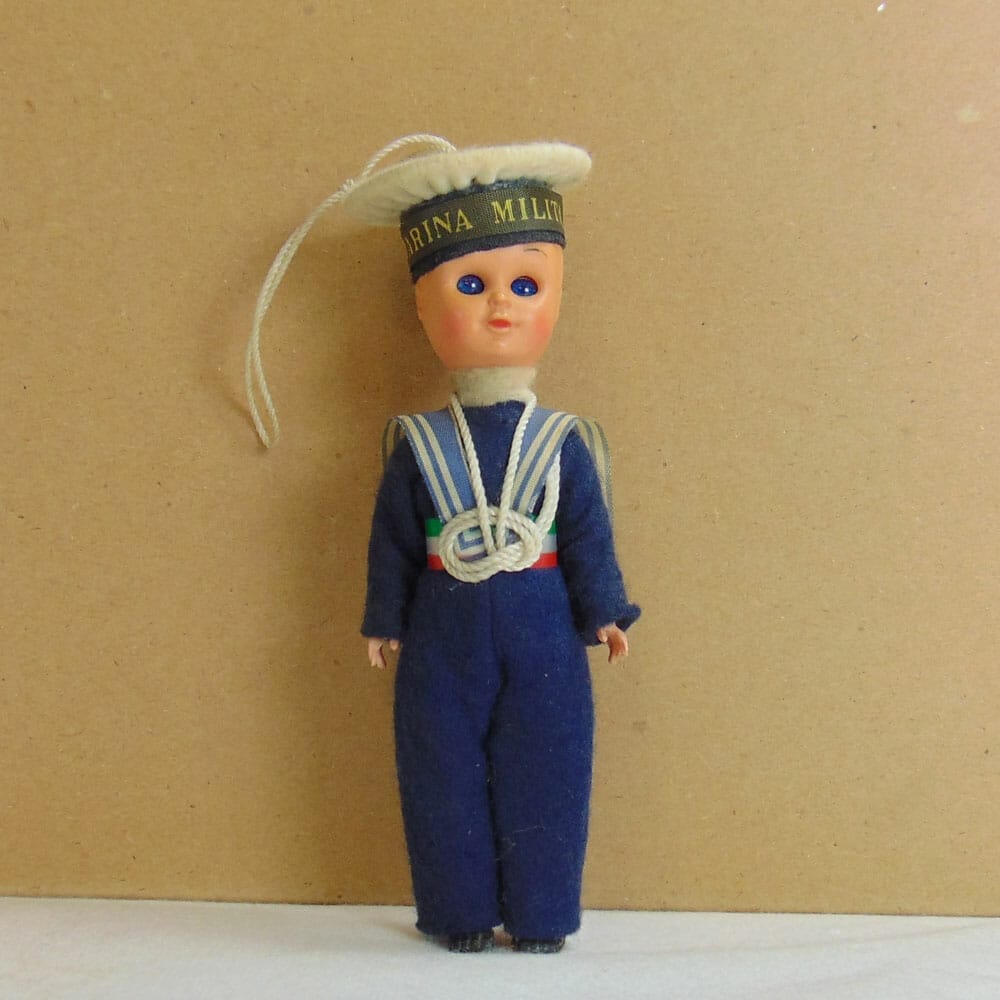 Figura militare del corpo dei Marinai degli anni’60. Produzione attribuibile alla LENCI. In plastica e panno, Completo di cordino per essere appeso. Manca la base di supporto, per il resto si presenta in ottime condizioni.