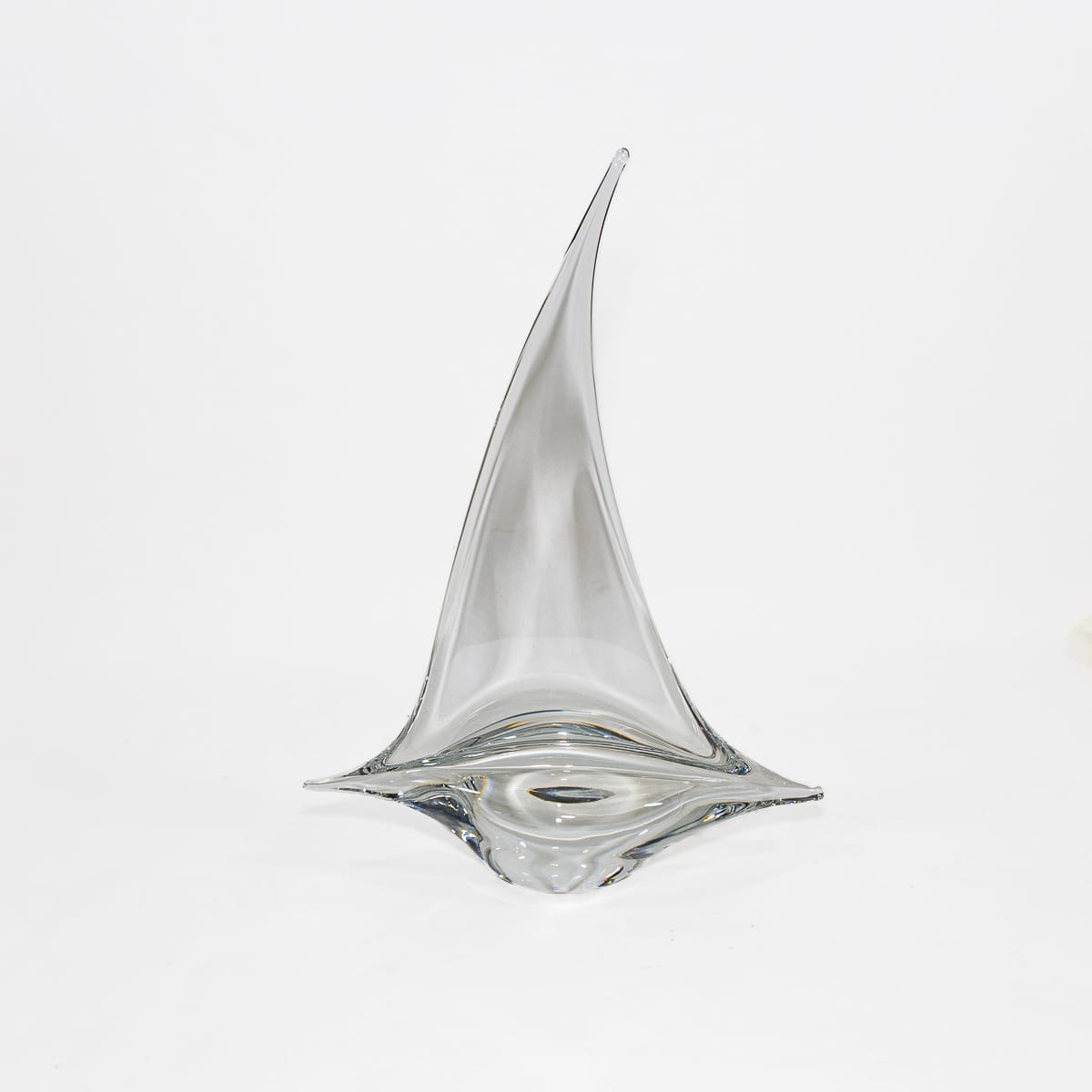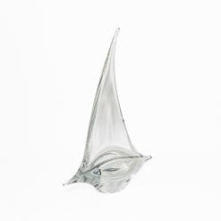 Questa magnifica barca a vela in vetro firmata da Maestro Ballarin è un’opera d’arte realizzata da uno dei nomi più rinomati dell’isola. Realizzata in vetro trasparente di altissima qualità, l’oggetto gioca con la luce e la trasparenza, simulando le vele gonfiate dal vento. Il vetro cristallino e le linee slanciate la rendono un oggetto di design incredibilmente elegante e raffinato.