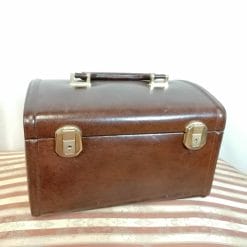Favoloso beauty vintage in pelle foderato in tessuto, con specchio e vani per gli oggetti. Un accessorio veramente speciale per il prossimo viaggio.