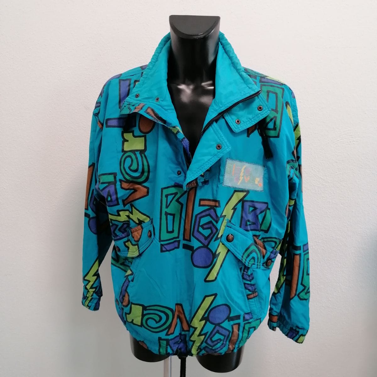 Big River antivento e impermeabile questa giacca anni ’90, bellissimo disegno vintage su base azzurro.