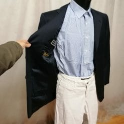 - Blazer sartoriale qualità sopraffina Duca Visconti (lanificio carignano), 100% lana, blu notte, due spacchetti posteriori. Taglia in etichetta 50, veste L.