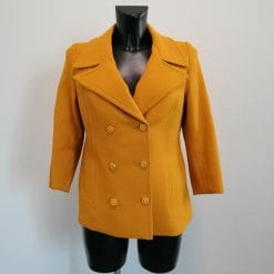 Blazer sartoriale doppiopetto foderato, bellissime rifiniture. Tessuto sostenuto misto lana, perfetto da mezza stagione. Giallo senape.