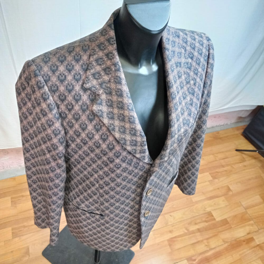 Blazer particolarmente caldo marca Hesco, tessuto pesante con fantasia originale. Tre tasche interne, due tasche esterne, spalline. Molto ben rifinito.