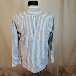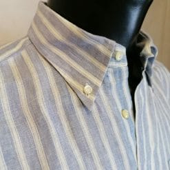 Boggi favolosa camicia button-down di lino da uomo a righe bianche e azzurre. Rifinitissimo, con bottoni di scorta.