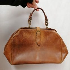 Favolosa borsa a mano in pelle marrone Davis & Sons con dettagli metallici.