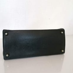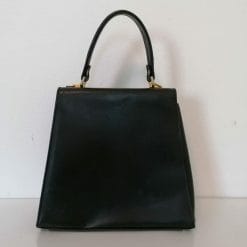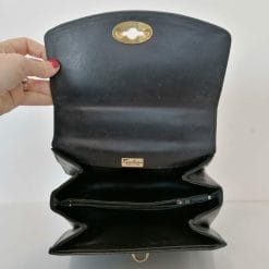 Borsa a mano con tracolla staccabile, vintage in pelle nera con hardware in metallo dorato.