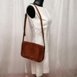 Borsa The Bridge – il Ponte a tracolla in vera pelle marrone coccodrillo, pezzo favoloso per veri amanti della moda.
