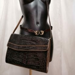 Borsa tracolla in vero coccodrillo marrone con cintura coordinata