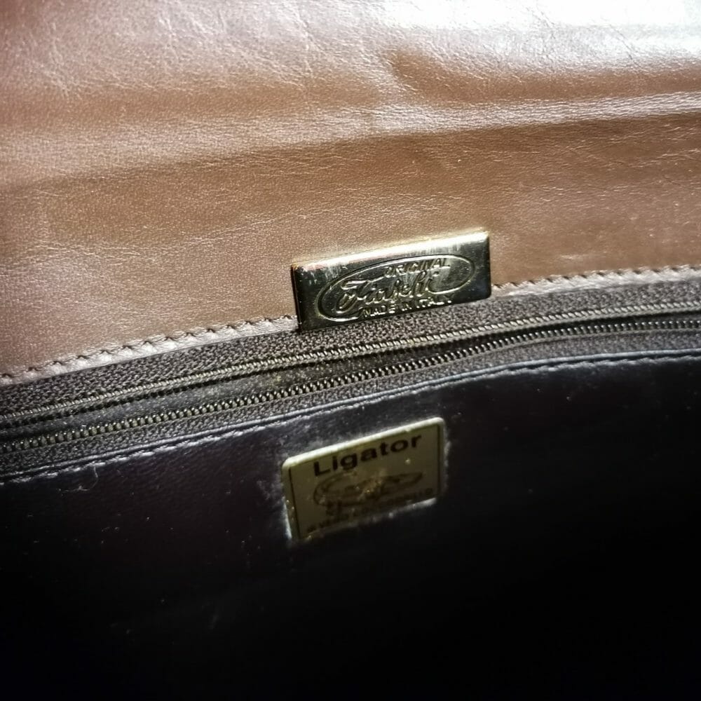 Borsa tracolla in vero coccodrillo marrone con cintura coordinata, marca Fiaschi.