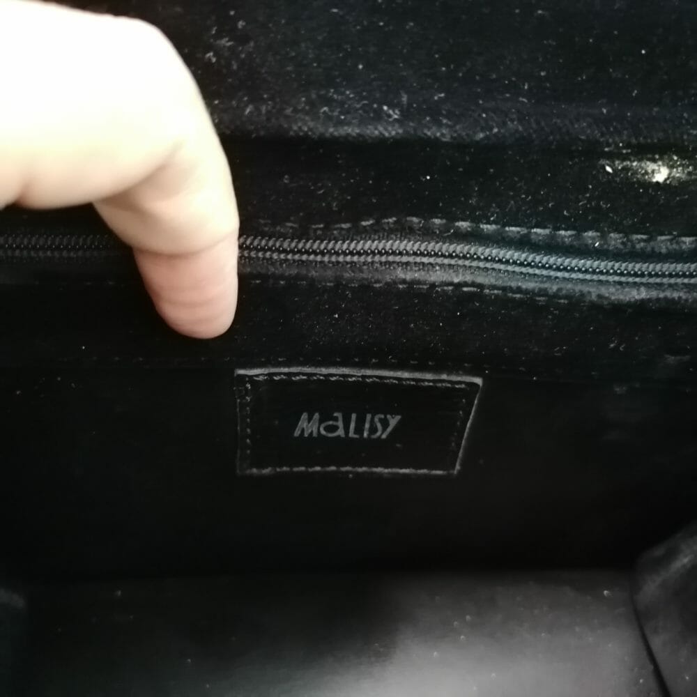 Borsetta a mano anni 90 in ciniglia Malisy. Rigida, forma particolare squadrata.