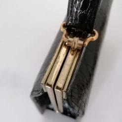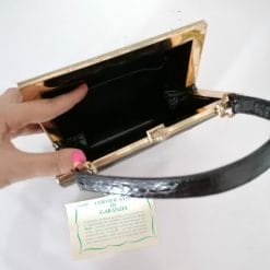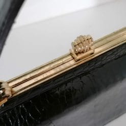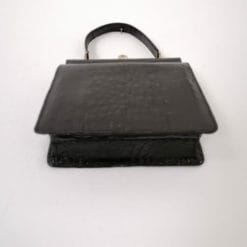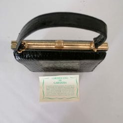 Borsetta a mano vintage in vero coccodrillo certificato, con finitura nera lucida. Un dettaglio senza tempo di grande eleganza, pre-owned con enorme charme.