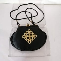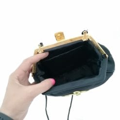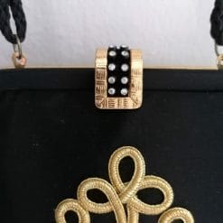 Borsetta vintage in raso con ricamo dorato, chiusura in metallo con brillantini. Nella confezione originale.