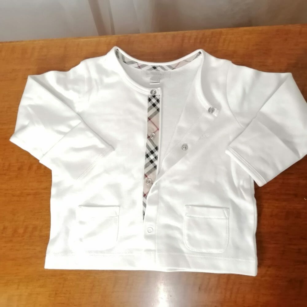 Burberry maglia per bimbi 12 mesi / 80 cm. Colore panna con finiture tartan classiche del marchio. Ricamo sul petto, vere taschine, chiusura con automatici