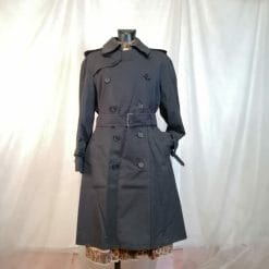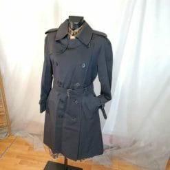Burberry’s trench originale, 55% poliestere, 45% lana, leggermente impermeabile, doppiopetto. Foderato, capo vintage raffinatissimo di ottima fattura. Fibbie ai polsi, cintura.